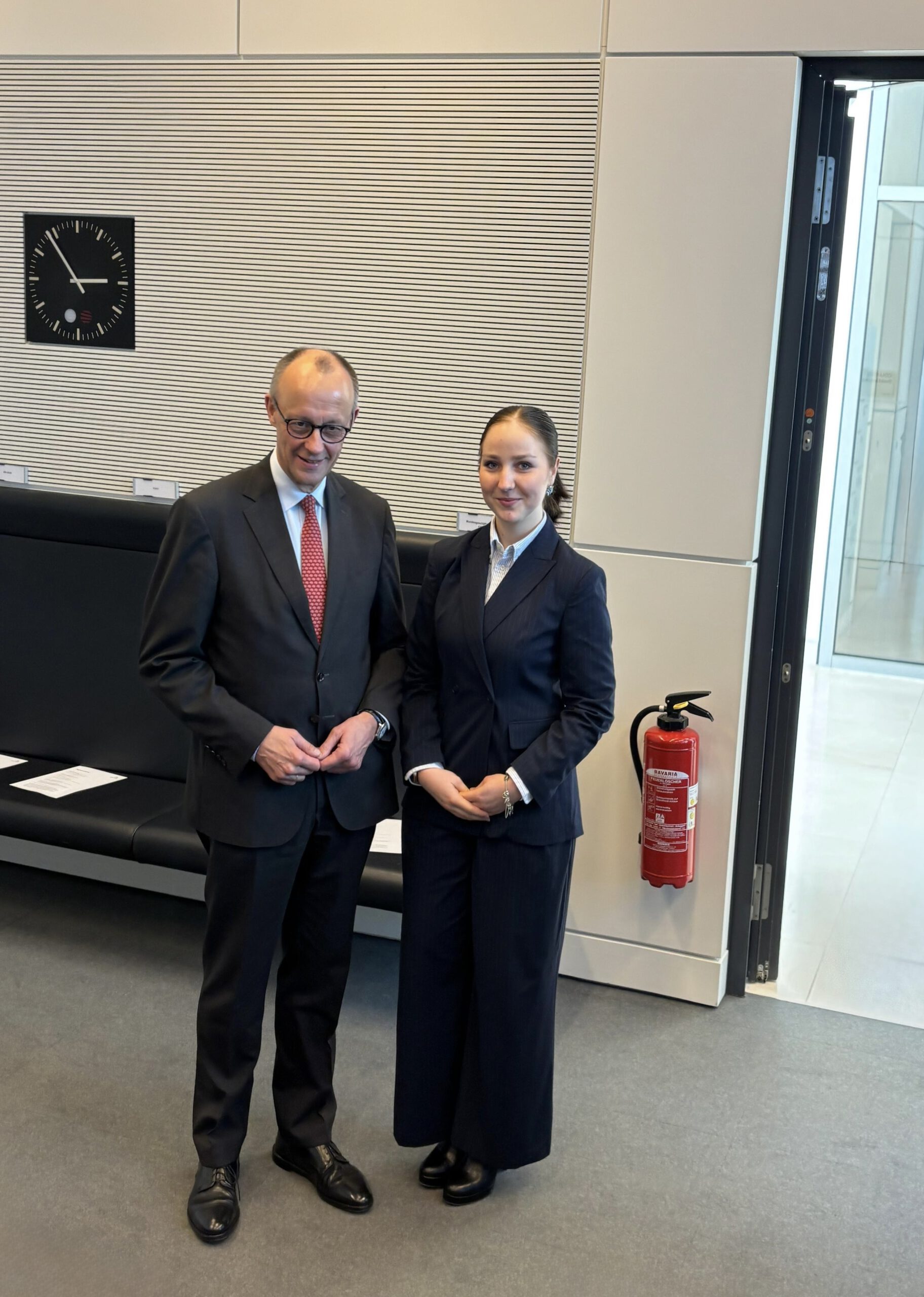 Ein besonderes Highlight war für mich, dass ich kurz vor der Fraktionssitzung mit in den Fraktionssaal der CDU/CSU Fraktion kommen durfte. Dort konnte ich auf Politiker wie den Bundeskanzler Friedrich Merz, die Bundestagspräsidentin Julia Klöckner und den Außenminister Johann Wadephul treffen.